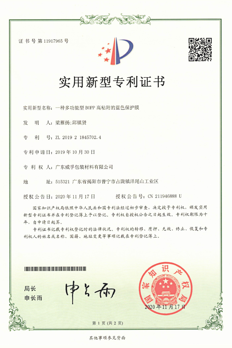 一種多功能型BOPP高粘附的藍(lán)色保護(hù)膜