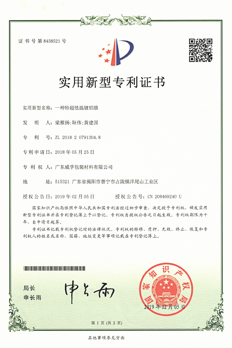 保持鍍鋁面高表面張力的CPP鍍鋁基膜